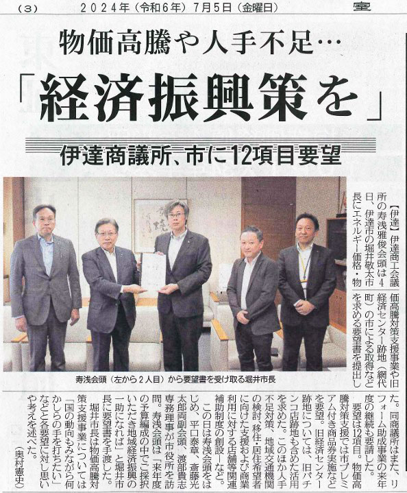 - 2025年11月7日【政策提言・要望活動】伊達市に要望書を提出し経済振興策を要請しました。